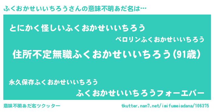 | 男性向けラノベタイトル風あだ名 | 『この素晴らしい世界にふくおかせいいちろうを!』 |