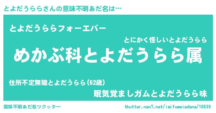 | 料理風あだ名 | 『とよだうららごはん』 |