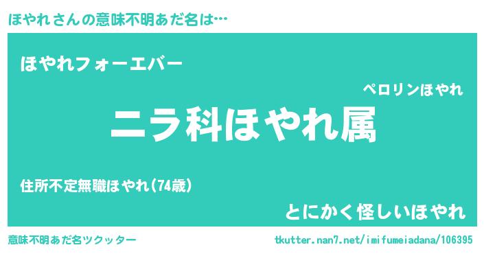 | 欧米人風あだ名 | 『アンジェラ・ほやれ』『ウサインほやれ』 |