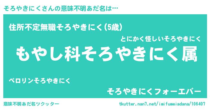 | 欧米人風あだ名 | 『そろやきにく・ステッグマイヤー』 |