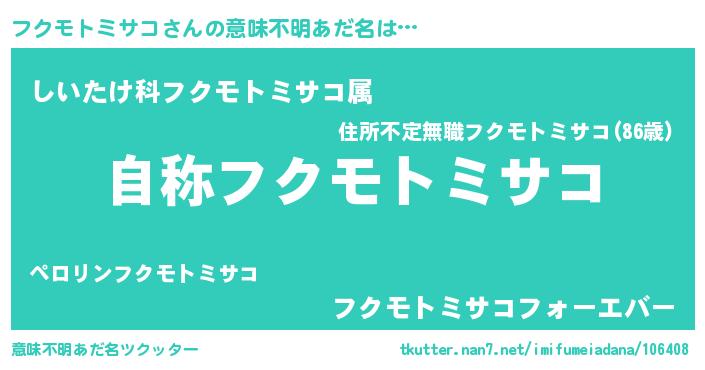 | 男性向けラノベタイトル風あだ名 | 『Re:フクモトミサコから始める異世界生活』 |