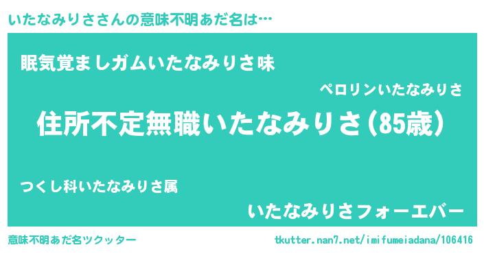 | 胡散臭い通販商品みたいなあだ名 | 『あなたにだけ特別に提供する世界で10本だけ現存している希少なブランデー…その名も「いたなみりさ」』 |