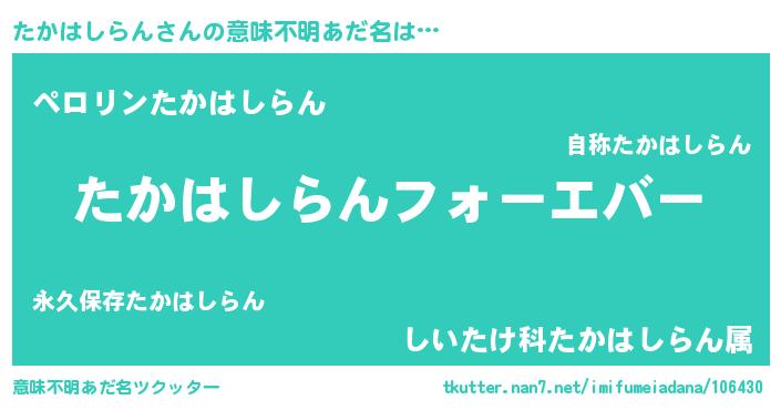 | 欧米人風あだ名 | 『たかはしらんクリステル』 |