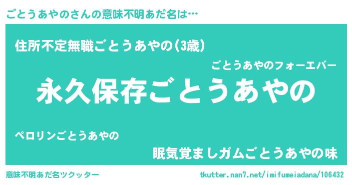 | 男性向けラノベタイトル風あだ名 | 『ごとうあやのという概念が存在しない退屈な世界 』 |