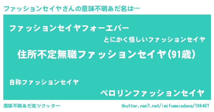 | 欧米人風あだ名 | 『ダレノガレファッションセイヤ』 |