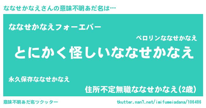 | ポケモン風あだ名 | 『ヒナナセカナエ』『ナナセダネ』 |