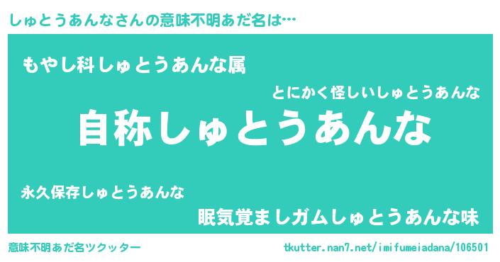 | 女子向けラノベタイトル風あだ名 | 『しゅとうあんなストレイドッグス』 |