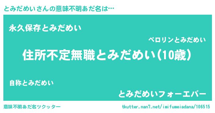 | ヘコむあだ名 | 『とみだめい(笑)』『なまこ酢』 |