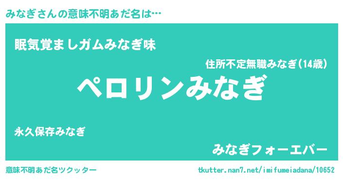 | ヒーロー風カッコイイあだ名 | 『スーパーミナギ』『慈愛の使者みなぎ』 |
