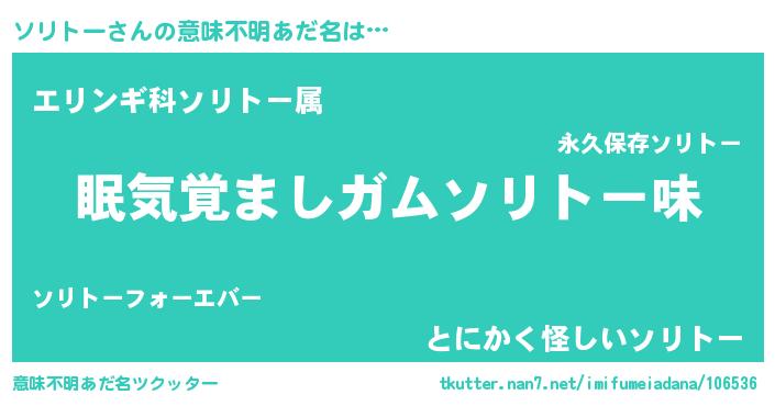 | 男性向けラノベタイトル風あだ名 | 『おまえをオタクにしてやるから、俺をソリトーにしてくれ! 』 |