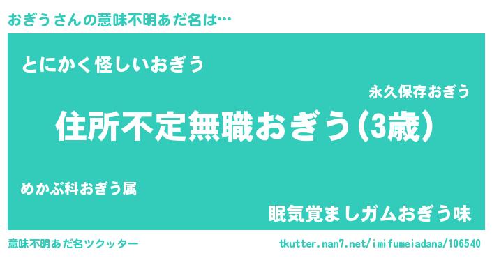 | ポケモン風あだ名 | 『オーギイ』『ヒオギウ』『ゼニオギ』 |
