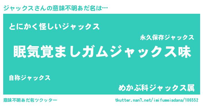 | ヒーロー風カッコイイあだ名 | 『正義の使者ジャックス』『暗黒騎士ジャ』 |