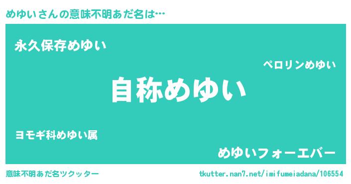 | 男性向けラノベタイトル風あだ名 | 『魔法科高校のめゆい』『めゆいの憂鬱』 |