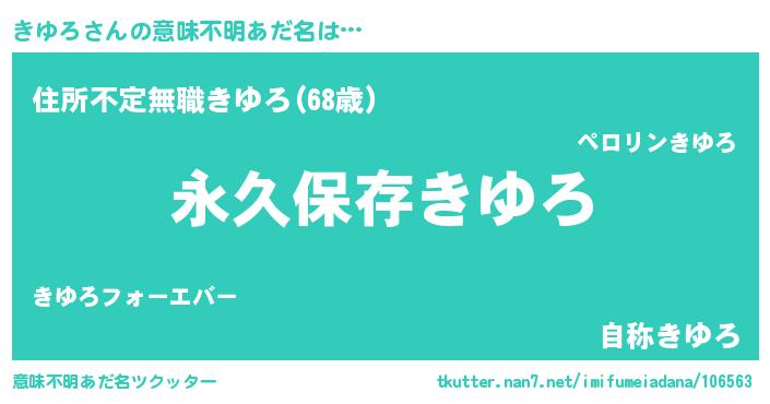 | 男性向けラノベタイトル風あだ名 | 『きゆろという概念が存在しない退屈な世界 』 |