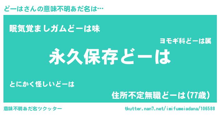 | 胡散臭い通販商品みたいなあだ名 | 『来世でも幸せになれる健康食品…その名も「どーは」』 |