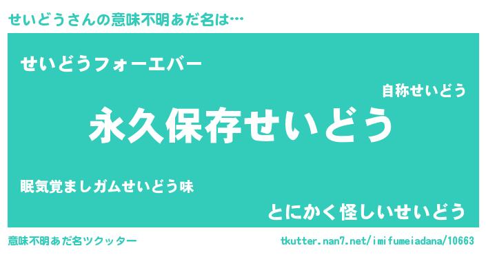 | ヒーロー風カッコイイあだ名 | 『ネオセイドウ』『ウルトラせいどうマン』 |