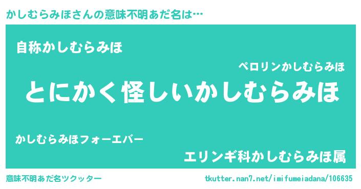 | 欧米人風あだ名 | 『ウサインかしむらみほ』 |