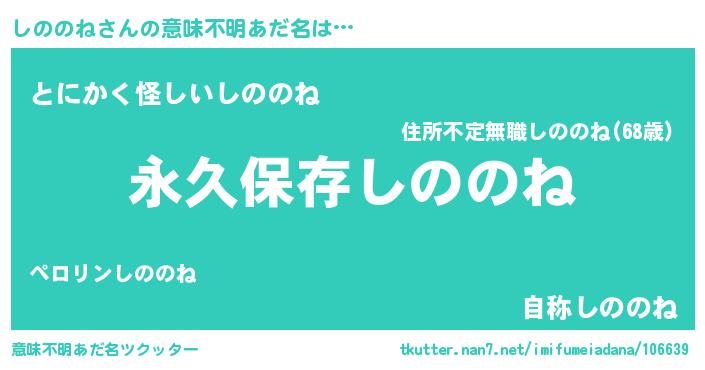 | ヘコむあだ名 | 『しののね(笑)』『しの太郎』『豆乳』 |