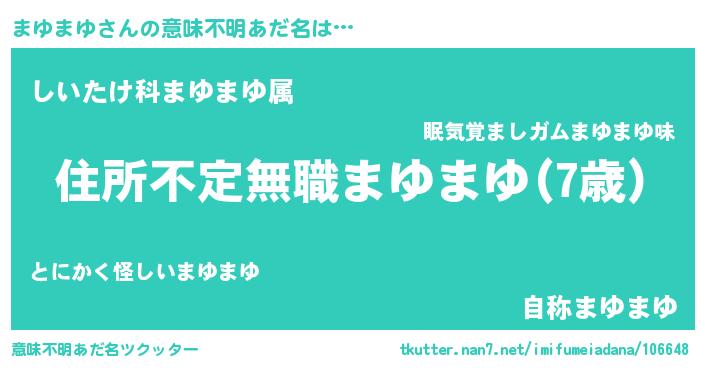 | 女子向けラノベタイトル風あだ名 | 『悪役まゆまゆに転生したようですが、知った事ではありません』 |