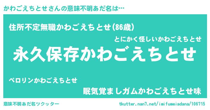 | 男性向けラノベタイトル風あだ名 | 『かわごえちとせという概念が存在しない退屈な世界 』 |