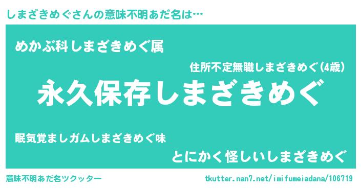 | ヘコむあだ名 | 『しまざきめぐ(小並感)』『しまを』 |