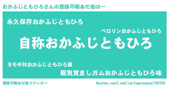 | 欧米人風あだ名 | 『ケンブリッジおかふじともひろ』 |
