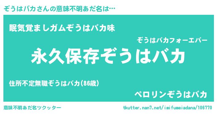 | 胡散臭い通販商品みたいなあだ名 | 『絶対に幸福をもたらす招き猫…その名も「ぞうはバカ」』 |