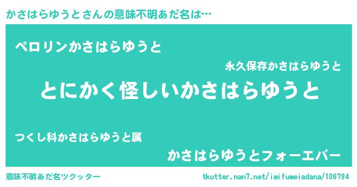 | 欧米人風あだ名 | 『ウサインかさはらゆうと』 |