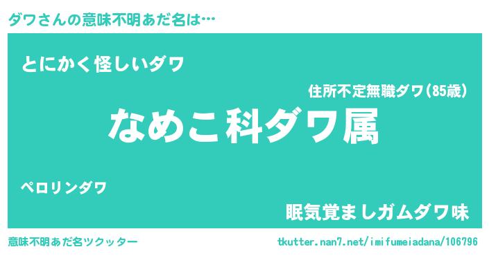 | 男性向けラノベタイトル風あだ名 | 『転生したらダワだった件』 |