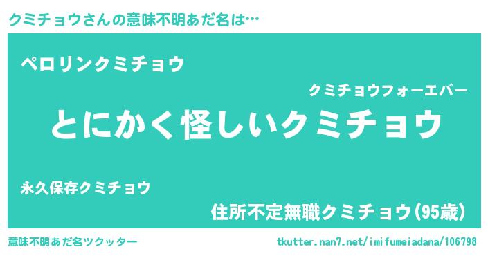 | ポケモン風あだ名 | 『ヒクミチョウ』『クミチュウ』 |