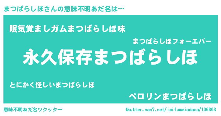 | ヘコむあだ名 | 『まつばらしほ(苦笑)』『まつにー』 |