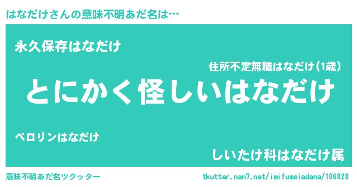 | 女子向けラノベタイトル風あだ名 | 『はなだけの卵を拾いまして』 |