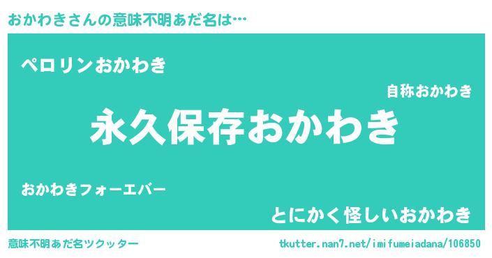 | 男性向けラノベタイトル風あだ名 | 『おかわきという概念が存在しない退屈な世界 』 |
