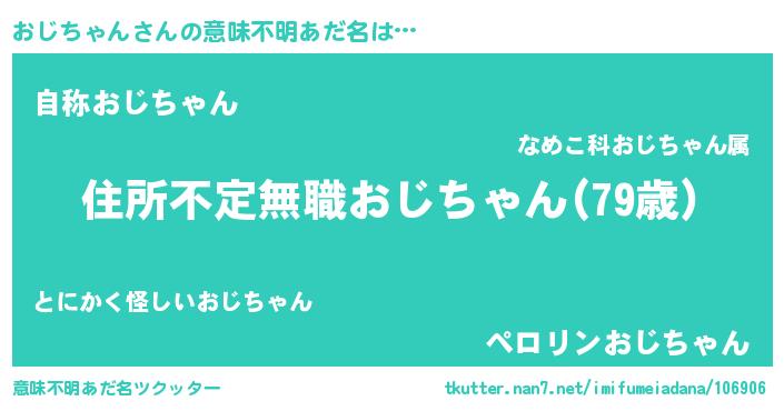 | 男性向けラノベタイトル風あだ名 | 『うちのおじちゃんが世界を掌握している!』 |