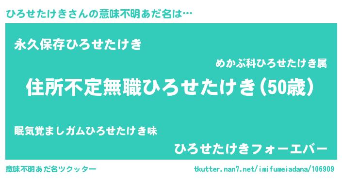 | 伝説のあだ名 | 『古より伝わる暗殺者ひろせたけき』 |