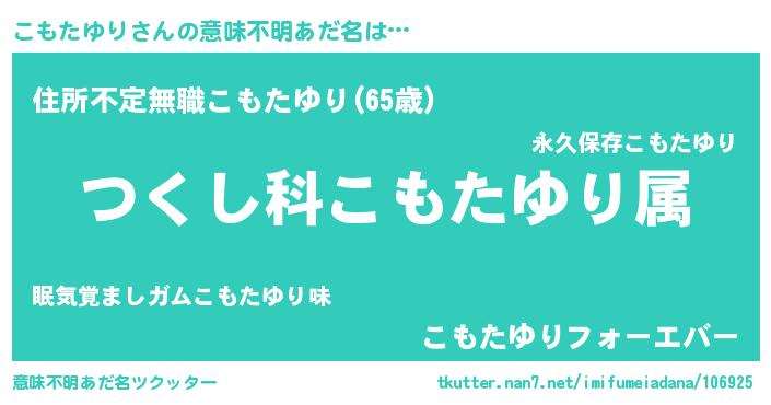 | ヘコむあだ名 | 『酢こんぶ』『こもたゆり(苦笑)』 |