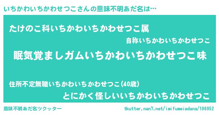 | 男性向けラノベタイトル風あだ名 | 『ノーゲーム・ノーイチカワイチカワセツコ』 |