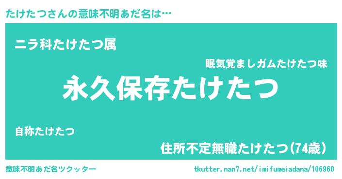 | 胡散臭い通販商品みたいなあだ名 | 『前代未聞の健康食品…その名も「たけたつ」』 |