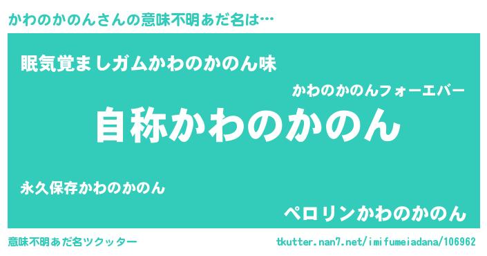 | 女子向けラノベタイトル風あだ名 | 『かわのかのんアンティーク』 |