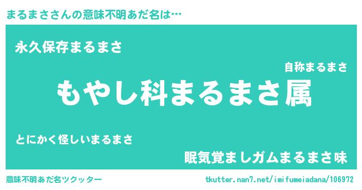 | 男性向けラノベタイトル風あだ名 | 『まるまさに滅ぼされるだけの簡単なお仕事です』 |