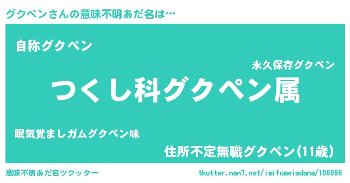 | ヘコむあだ名 | 『グクペン(遠い目)』『グクを』 |