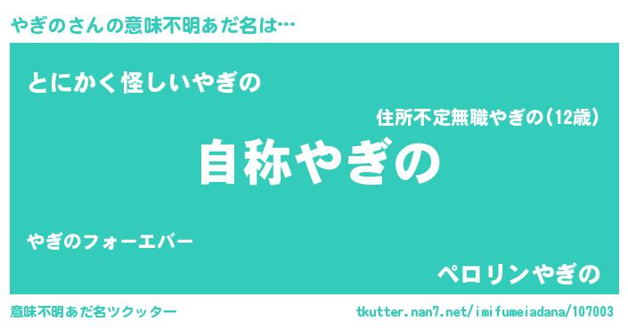 | ピコ太郎風あだ名 | 『ヤギ一郎』『ヤコ五郎』『ピヤ四郎』 |