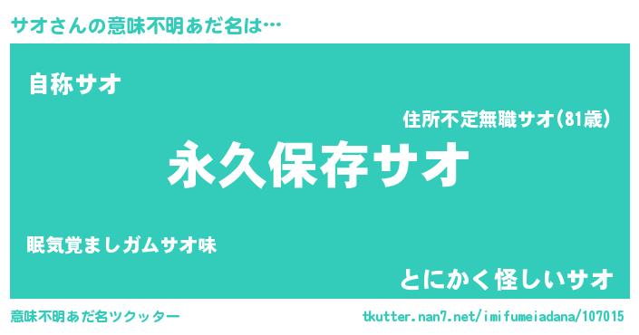 | ファンタジー風あだ名 | 『サオディッシュ』『ゼサオトゥ』 |