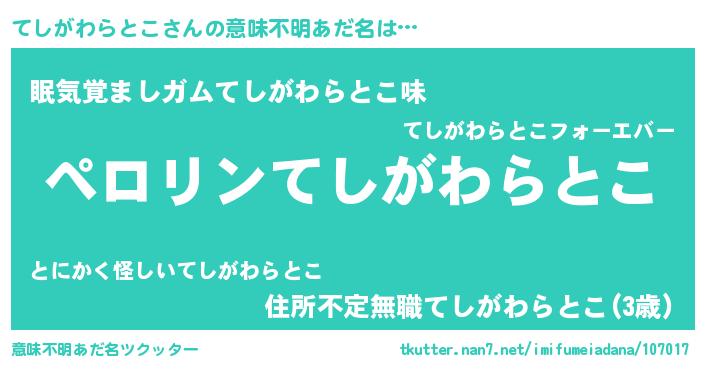 | 胡散臭い通販商品みたいなあだ名 | 『億万長者になれるブレスレット…その名も「てしがわらとこ」』 |