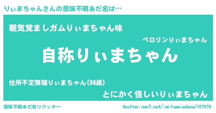 | 男性向けラノベタイトル風あだ名 | 『Re:りぃまちゃんから始める異世界生活』 |