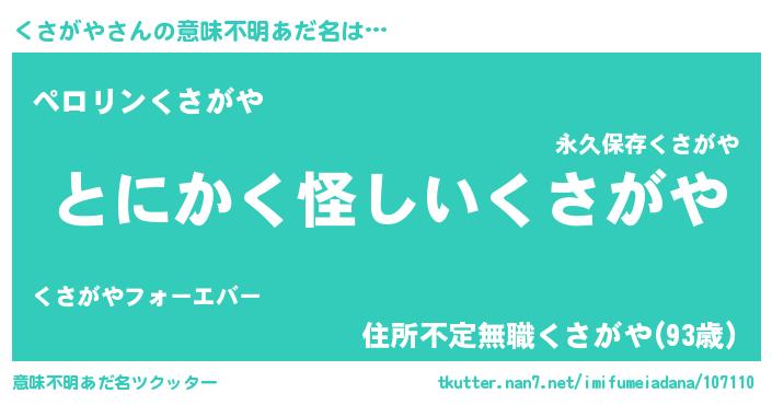 | 女子向けラノベタイトル風あだ名 | 『くさがやの卵を拾いまして』 |