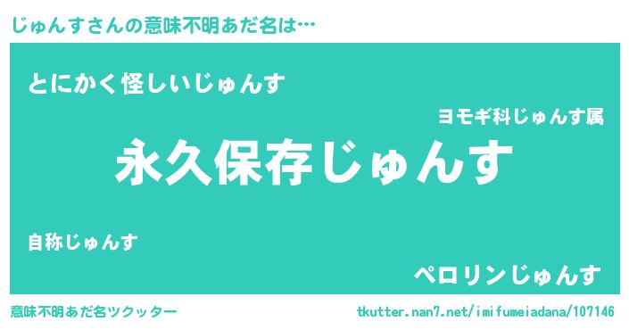 | 伝説のあだ名 | 『古より伝わる暗殺者じゅんす』 |