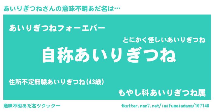 | 女子向けラノベタイトル風あだ名 | 『闇のあいりぎつね』 |