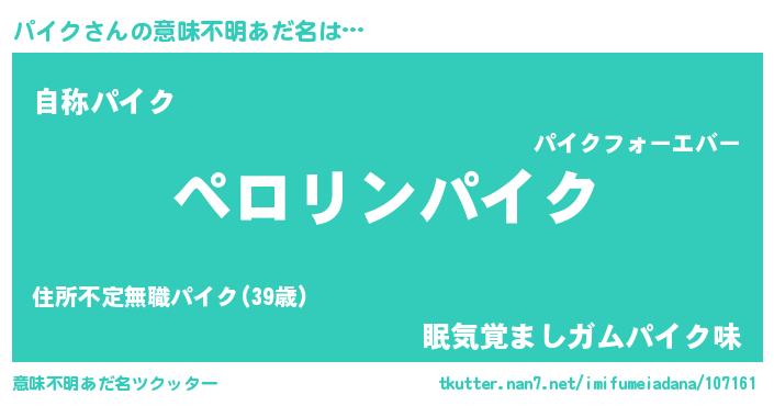 | ヒーロー風カッコイイあだ名 | 『スーパーパイク』『サイバー戦士パイク』 |