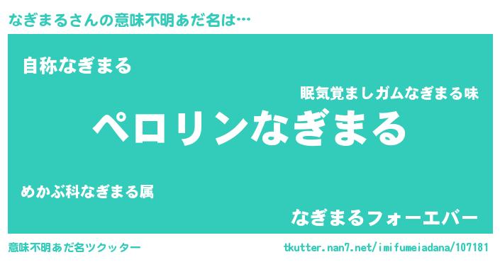 | 欧米人風あだ名 | 『マイケルなぎまる』『ダニエルなぎまる』 |